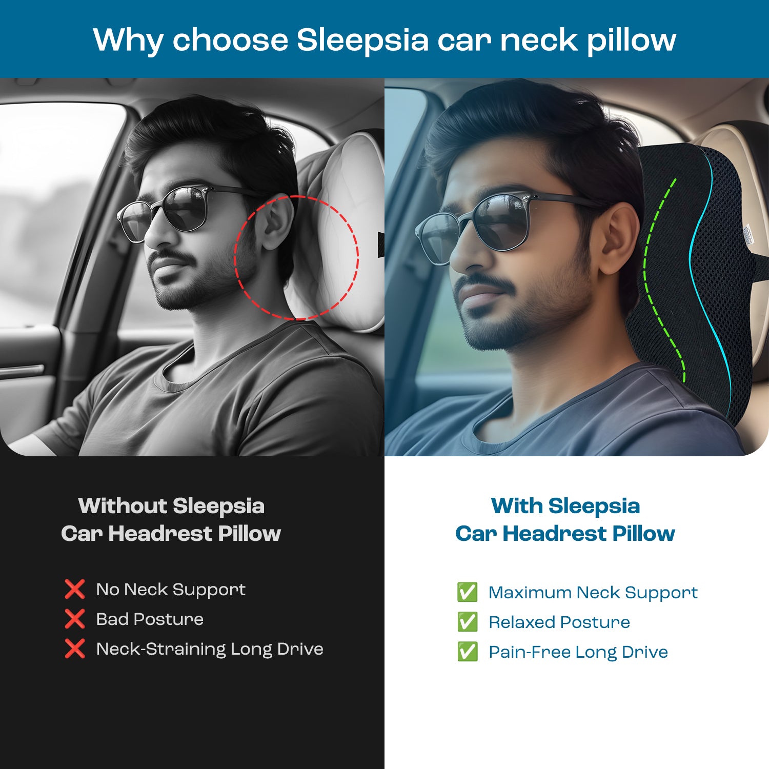 💤 Enhances Comfort: Experience unmatched comfort and relaxation during your travels with the superior design and quality construction of our Sleepsia Car Neck Rest Memory Foam Pillow.