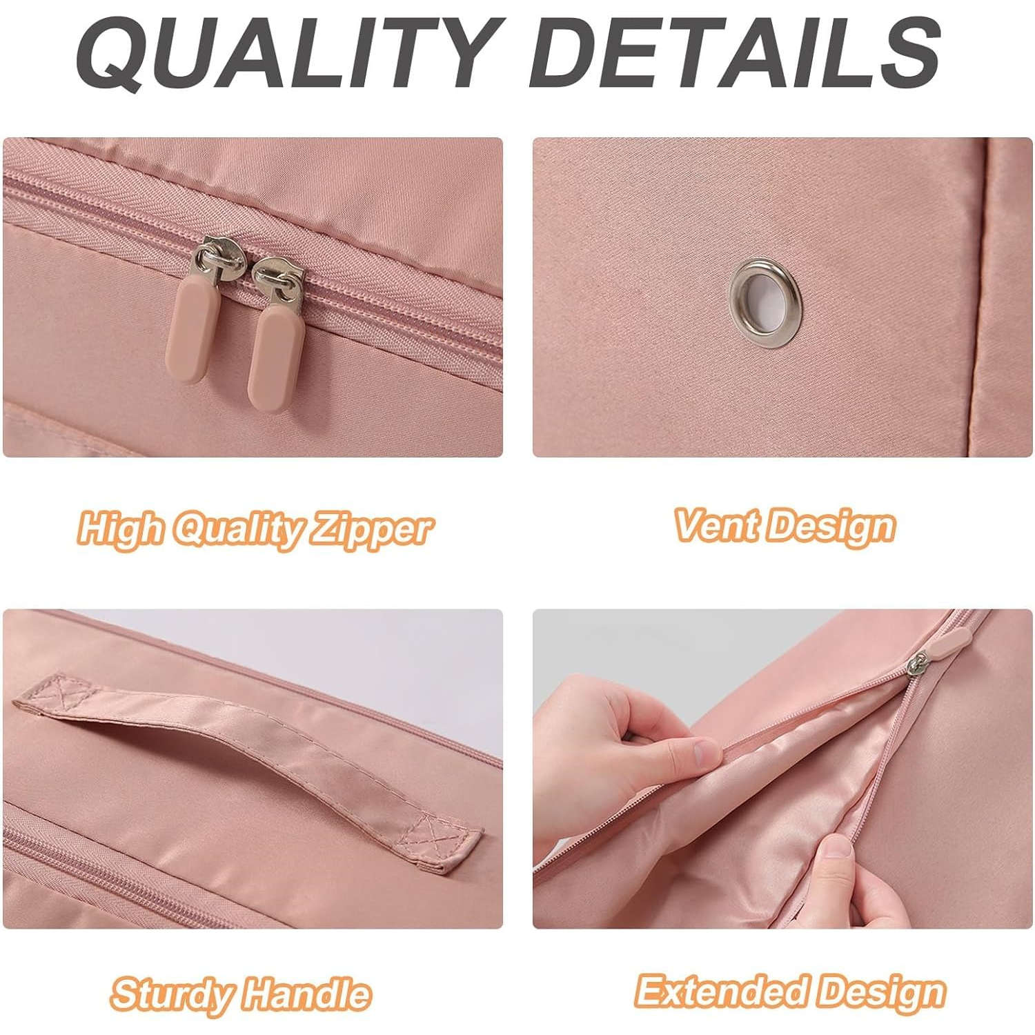 HOW TO MAKE THE COMPRESSION HAPPEN? - There Is a extra zipper outside of our compression packing cubes which can be zipped up to flatten the cubes and save the space as far as possible. It just works like a vacuum sealer. You just need to: 1) Fold your clothes and quilt, and flatten them 2) Pack clothes in the cubes and zip the normal zipper. 3) Put a finger on the back of the zipper in the space when compressing the packing cubes in case the zipper get stuck in fabric.