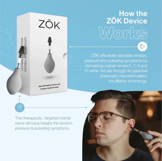 The world's first consumer-friendly health device that naturally reduces tension and pressure through cranial nerve pressure stimulation.