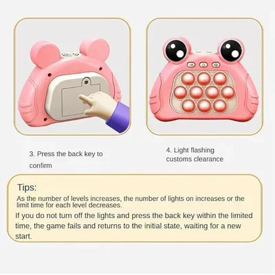 Please note that to achieve optimal gameplay, our Electronic Pop It Game's bubbles require sufficient pressure to activate the sensor. Gentle taps or light touches may not register, potentially leading to a limited or delayed response. To ensure your experience is top-notch, remember to press the bubbles firmly. Now, are you ready to take on the ultimate speed and memory challenge? Get set and pop your way to the top with the Electronic Speed Pop It Game!
