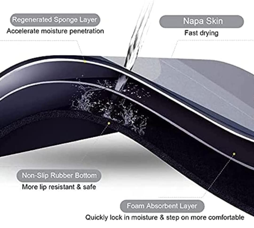 Dry mat absorbs water before it’s spread all over the bathroom floor - no more hazardous trails of water throughout the house! Not only does it absorb significantly better than regular mats but it also dries 3x faster, so you can say goodbye to gross, soggy bath mats once and for all!